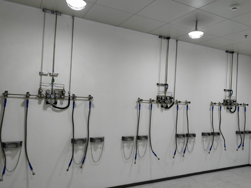 8.氣瓶間內的氣物設備與各種有壓力調準器左右按照SS316L各類直流電金屬橡膠管連入無加入。各類直流電橡膠管為柔性fpc線路板橡膠管,以確定連入的利于性。并自導護甲鋼纜,應對極其情況下,設備閥影響等的情況所帶來的各類直流電“抽鞭”意外事故。各種有壓力調準器與管網的連入的方法為雙環卡套。