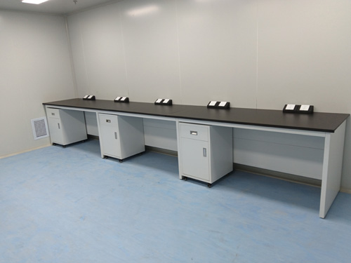 1.材 料:工作臺面使用12.7mm厚威盛亞實芯理化檢驗板,邊沿加厚為25.4mm,耐浸蝕、手表有防水能力、耐低溫環境防腐蝕、耐抗撞擊、不改變形、沒有毒性、易環保、并享有優質的承載的重量的性能。